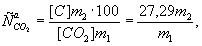 где m1 - масса 1 см3 диоксида углерода в зависимости от температуры (см. табл. 2), мг; т - масса навески испытуемого топлива, г; V0 - объем диоксида углерода, см3, приведенный к нормальному давлению, определяют по формуле