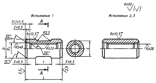 * Rz 6,3 мкм - для муфт исполнения 3 Рисунок 4 - Переводная муфта Таблица 3 Размеры в миллиметрах