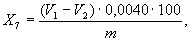 где h60 - вязкость пасты, измеренная через 1 ч, после начала испытания, Па×с; h0 - начальная вязкость пасты, Па×с. За результат анализа принимают среднее арифметическое двух параллельных определений, допускаемое расхождение между которыми не должно превышать 0,2. (Измененная редакция, Изм. № 3, 4). 3.8. - 3.8.3. (Исключены, Изм. № 2). 3.9. Определение расхода пластификатора на 100 м.ч. поливинилхлорида Бюретка вместимостью 25 см3 с ценой деления 0,1 см3. Ступка с пестиком по ГОСТ 9147-80. Диоктилфталат по ГОСТ 8728-88. 3.9.2. Проведение испытания 10 г поливинилхлорида, взвешенного с погрешностью не более 0,1 г, помещают в ступку, приливают около 3,5 см3 диоктилфталата до полного смачивания полимера. Затем диоктилфталат добавляют порциями по 0,5 см3 до образования пасты. После прилива каждой порции диоктилфталата содержимое ступки тщательно перемешивают в течение 2 - 3 мин. Образование пасты отмечают с момента появления текучести. 3.9.3. Обработка результатов Расход пластификатора (Х6) в см3/100 м.ч. поливинилхлорида вычисляют по формуле