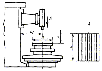 Дата введения 01.01.95 Настоящий стандарт распространяется на фрезерно-модельные станки, предназначенные для изготовления моделей для модельных цехов литейных и машиностроительных заводов, а также других изделий из древесины и мягких металлических сплавов. Требования настоящего стандарта являются обязательными. 1. ОСНОВНЫЕ ПАРАМЕТРЫ И РАЗМЕРЫ1.1. Основные параметры и размеры должны соответствовать указанным на черт. 1 и в таблице. L1 - расстояние от оси шпинделя до направляющей поверхности колонны (вылет шпинделя); В - ширина рабочей поверхности стола; L - длина рабочей поверхности стола; Н - наибольшее расстояние от торца шпинделя до рабочей поверхности стола. Черт. 1 Примечание. Чертеж 1 не определяет конструкцию станков Размеры в мм