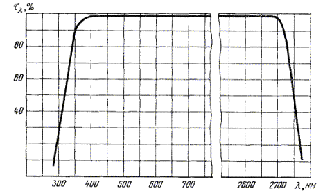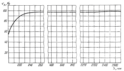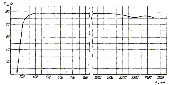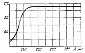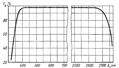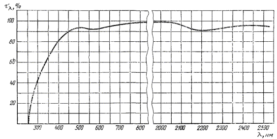 Спектральная кривая коэффициента пропускания τλ клея ОК-90 М