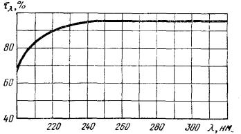 Спектральная кривая коэффициента пропускания τλ клея УФ-235М