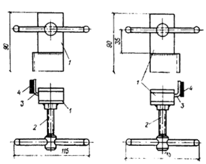 Рис. 8. Фиксатор нижний (а) и верхний (б) 1 - основание; 2 - крепежный винт; 3 - упор; 4 - резиновая прокладка