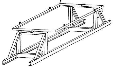 Рис 13 Общий вид горизонтального (поворотного) стенда для сборки стеклопанелей 4.17. Сборка стеклопанелей выполняется на вертикальных или горизонтальных (поворотных) стендах (рис. 12 и 13). 4.18. Работы по сборке стеклопанелей производят в той же последовательности, что и при поэлементном заполнении проемов профильным стеклом.