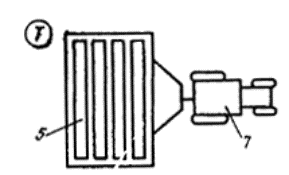 Рис. 15. Схема организации рабочего места при монтаже стеклопанелей с транспортных средств 1 - монтируемая стеклопанель; 2 - смонтированный участок ограждения; 3 - трубчатые леса; 4 - монтажный кран; 5 - кассета с панелями; 6 - подвесная люлька; 7 - тягач; М - монтажники; Т - такелажник 4.22. Заполнение световых проемов зенитных фонарей профильным стеклом производят в следующей последовательности: в проеме фонаря устанавливают защитные сетки; на опорные плоскости стаканов клеем 88-Н наклеивают прокладки из губчатой морозостойкой резины; укладывают элементы профильного стекла внутреннего слоя вплотную друг к другу, предварительно наклеив на одну из боковых поверхностей уплотнительные прокладки; герметизируют мастиками стыки между элементами профильного стекла внутреннего слоя; укладывают элементы профильного стекла наружного слоя вплотную друг к другу, предварительно наклеив на одну из боковых поверхностей уплотнительные прокладки из профильной резины; перекрывают стыки между элементами профильного стекла наружного слоя металлическими нательниками и крепят их болтами к опорному стакану. 4.23. При устройстве ограждающих конструкций из профильного стекла необходимо соблюдать правила техники безопасности, изложенные в главе СНиП «Техника безопасности в строительстве», а также «Правила пожарной безопасности при производстве строительно-монтажных работ». 4.24. Монтаж многоярусных конструкций из профильного стекла при поэлементной сборке должен начинаться с верхнего яруса, а стеклопанелей - с нижнего. Не разрешается производить монтаж элементов профильного стекла или стеклопанелей одновременно на нескольких ярусах (один под другим). 5. ЭКСПЛУАТАЦИЯ И РЕМОНТ5.1. В процессе эксплуатации ограждений из профильного стекла необходимо осуществлять систематический контроль за состоянием конструкций. 5.2. Элементы профильного стекла, имеющие трещины, должны быть заменены. До выполнения ремонтных работ по замене элементов необходимо оградить рабочую зону или установить защитные сетки. 5.3. Замену поврежденного элемента профильного стекла производят в следующей последовательности: удаляют поврежденный элемент; удаляют с боковых поверхностей соседних элементов уплотнительные прокладки и мастику; ослабляют верхний крепежный уголок; снимают на участке замены нижний крепежный уголок; на место удаленного элемента устанавливают без резиновых насадок новый элемент профильного стекла, опирая его на прокладку из плотной резины, толщиной 6 - 8 мм; устанавливают нижний крепежный уголок и закрепляют верхний; уплотняют и герметизируют стыки. 5.4. Нагревательные приборы следует размещать от поверхности ограждений из профильного стекла на расстоянии не менее 25 см. 5.5. В процессе эксплуатации следует периодически производить очистку светопрозрачных ограждений из профильного стекла. Рекомендуемые сроки очистки профильного стекла от запыления приведены в табл. 12. Таблица 12