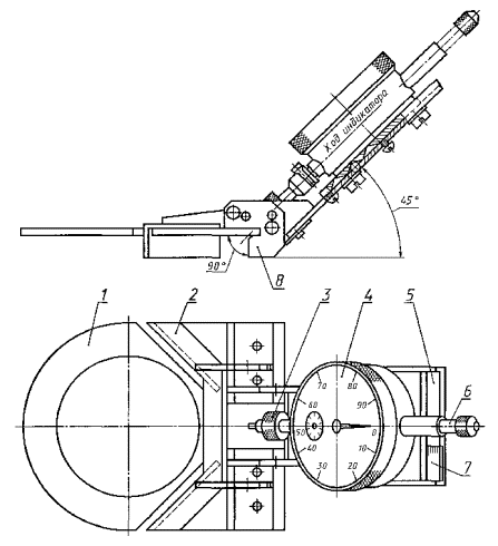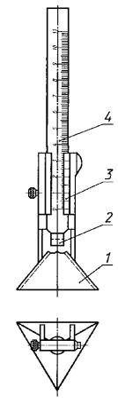 Дата введения 01.01.81 Настоящий стандарт устанавливает метод измерения глубины отбитости наружных углов и ребер огнеупорных изделий с прямыми, острыми двухгранными или трехгранными углами и внешних кромок изделий формы тел вращения с прямыми и острыми углами между торцовой поверхностью и касательной к боковой поверхности. Глубину отбитости определяют как длину отрезка от вершины углов до основания отбитого участка изделия. Стандарт не распространяется на огнеупорные изделия разного назначения массой не более 2 кг. (Измененная редакция, Изм. № 2). 1. АППАРАТУРА1.1. Приспособление универсальное (тип 1) - для измерения глубины отбитости углов, ребер и кромок, не превышающей 20 мм (черт. 1). Основной измерительный элемент универсального приспособления - индикатор часового типа ИЧ 10 класса 1 по ГОСТ 577, смонтирован на универсальном фиксирующем устройстве. Приспособление используется со съемными наконечниками диаметрами 1 и 3 мм. Съемный наконечник диаметром 1 мм используется для измерения глубины отбитости в диапазоне от 0 до 2 мм. Съемный наконечник диаметром 3 мм используется для измерения глубины отбитости в диапазоне от 2 до 20 мм. Дополнительным измерительным элементом является линейка по ГОСТ 427. Допускается применение универсального приспособления с индикатором часового типа ИЧ-25 класса 1 по ГОСТ 577 с соответствующим изменением конструкции прибора, связанным с увеличением диаметра головки индикатора. 1 - базовая плата; 2 - опорный фиксатор; 3 - съемный наконечник; 4 - индикатор; 5 - откидная планка; 6 - стержень измерителя; 7 - линейка; 8 - основание платы 1.2. Приспособления упрощенной конструкции типов II и III (черт. 2 и 3) - для измерения глубины отбитости углов и ребер свыше 2 до 80 мм на изделиях с двугранными и трехгранными (прямыми и острыми) углами. Измерительный элемент приспособлений - штанга с нониусной шкалой штангенциркуля типа ШЦТ-1-125-0,1 по ГОСТ 166, смонтирован на жестком основании. 1 - основание; 2 - наконечник; 3 - нониус; 4 - измерительный стержень 1 - основание; 2 - наконечник; 3 - нониус; 4 - измерительный стержень Примечание. Черт. 1 - 3 конструкции приспособлений не определяют. Приспособления изготавливают с наконечниками диаметром 3 и 10 мм. Наконечники диаметром 3 мм применяются при измерении глубины отбитости углов и ребер свыше 2 до 20 мм на обожженных и безобжиговых изделиях нормальных размеров и фасонных; наконечники диаметром 10 мм применяются при измерении глубины отбитости углов и ребер свыше 2 до 80 мм на бетонных блоках. В зависимости от объекта измерения применяются приспособления типа: II - для измерения глубины отбитости углов (черт. 2); III - для измерения глубины отбитости ребер (черт. 3). 1.1, 1.2. (Измененная редакция, Изм. № 1, 2). 1.3. (Исключен, Изм. № 1). 2. ПОДГОТОВКА К ИЗМЕРЕНИЮ2.1. Перед проведением измерения универсальным приспособлением устанавливают правильное положение нулевой точки индикатора. Для этого приспособление устанавливают на металлический шаблон любого размера таким образом, чтобы плоскости базовой платы и опорного фиксатора (при установке на угол) или плоскости базовой платы и ее основания (при установке на ребро) совпадали с плоскостями шаблона, затем нажимают на стержень измерителя до соприкосновения наконечника с вершиной угла шаблона и перемещают подвижную шкалу индикатора до тех пор, пока стрелка не окажется против н