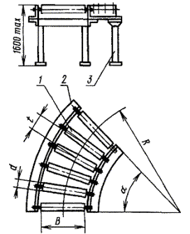 шагом ролика t = 60 мм, радиусом кривизны R =