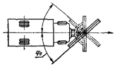 ножом отвала и продольной осью машины, отсчитываемый от оси против часовой