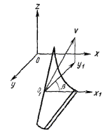 передней плоскостью ножа крыла и горизонтальной плоскостью