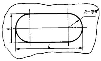Примечания: 1. Знаком «×» обозначены применяемые длины отверстий. 2. Допускается в обоснованных случаях применять: а) прямоугольные отверстия для диаметров стержней до 24 мм с размерами В и L, соответствующими табл. 2, и радиусами закругления по табл. 1; б) продолговатые отверстия с размерами L, не предусмотренные табл. 2, выбранные по ряду Ra 10 ГОСТ 6636-69. 3. При изготовлении продолговатых отверстий концевыми фрезами по ГОСТ 17024-82, ГОСТ 17025-71, ГОСТ 17026-71 допускается применять размеры В, равные 3, 4, 5, 6, 8, 25, 36, 40 мм. 4. Предельные отклонения размеров отверстий - не грубее Н14 (А7). 3, 4. (Измененная редакция, Изм. № 1). |