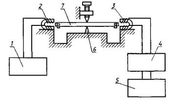 Постановлением Государственного комитета стандартов Совета Министров СССР от 26.03.74 № 689 дата введения установлена 01.07.75 Ограничение срока действия снято по протоколу № 5-94 Межгосударственного Совета по стандартизации, метрология н сертификации (ИУС П-12-94) Настоящий стандарт распространяется на древесину и устанавливает резонансный метод определения модуля упругости вдоль волокон древесины, модулей сдвига в радиальной и тангентальной плоскостях при продольной нагрузке и логарифмического декремента колебаний - показателя рассеяния энергии. Сущность метода заключается в возбуждении у образца со свободными концами продольных колебаний основной гармоники и изгибных колебаний второго обертона. По частотам резонансных колебаний определяют модуль упругости и модуля сдвига, а по ширине резонансных пиков - логарифмический декремент колебаний. Стандарт полностью соответствует СТ СЭВ 1143-78. (Измененная редакция, Изм. № 1). 1. АППАРАТУРА И МАТЕРИАЛЫ1.1. Для проведения испытаний применяют: резонансную установку (см. черт. 1) или подобную ей с погрешность измерения частоты колебаний не более 0,1 Гц, обеспечивающую закрепление образца с помощью игл, возбуждение и измерение колебаний с использованием электромагнитных преобразователей; линейку измерительную металлическую по ГОСТ 427-75 с ценой деления 1 мм; штангенциркуль по ГОСТ 166-89 с погрешностью измерения не более 0,1 мм; весы с погрешностью взвешивания не более 0,1 г; аппаратуру и материалы для определения влажности древесины по ГОСТ 16483.7-71. Схема резонансной установки