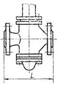 4. Строительные длины литых регуляторов давления и регулирующих двухседельных клапанов из чугуна и стали должны соответствовать указанным на черт. 3 и в табл. 3. Размеры в мм