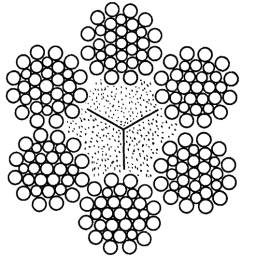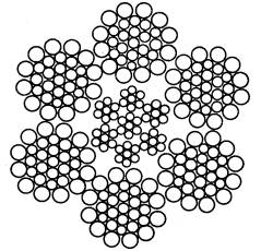 Дата введения 01.07.89 Настоящий стандарт распространяется на стальные талевые канаты, используемые на буровых установках для эксплуатационного и глубокого разведочного бурения нефтяных и газовых скважин. Требования пп. 1.1, 1.3, 2.4, 2.5, 2.6, 2.7, 2.14, 4.2, 4.4 являются обязательными. (Измененная редакция, Изм. № 1). 1. ОСНОВНЫЕ ПАРАМЕТРЫ И РАЗМЕРЫ1.1. Канаты должны изготовляться типа ЛК-РО конструкции 6´31 (1 + 6 + 6 / 6 + 12) с металлическим сердечником конструкции 7´7 (м. с.) или органическим сердечником (о. с.). 1.2. Канаты должны изготовляться правой крестовой свивки. Направление свивки проволок в прядях каната должно быть противоположным направлению свивки каната. Допускается изготовлять канаты левой крестовой свивки. 1.3. Основные параметры и размеры канатов должны соответствовать черт. 1, 2 и табл. 1, 2. Диаметры проволок в канатах являются расчетными и могут уточняться в пределах ± 0,1 мм, при этом диаметры канатов не должны выходить за пределы допускаемых отклонений, приведенных в п. 2.4. Шестипрядный канат 6´31 + 1 м. с.; 6 ´ 31 = 186 проволок с металлическим сердечником конструкции 7 ´ 7 = 49 проволок (прядь каната 1 + 6 + 6 / 6 + 12; прядь сердечника 1 + 6). Шестипрядный канат 6´31 + 1 о. с.; 6 ´ 31 = 186 проволок с органическим сердечником (прядь каната 1 + 6 + 6 / 6 + 12).