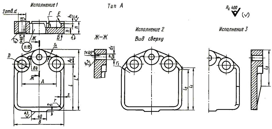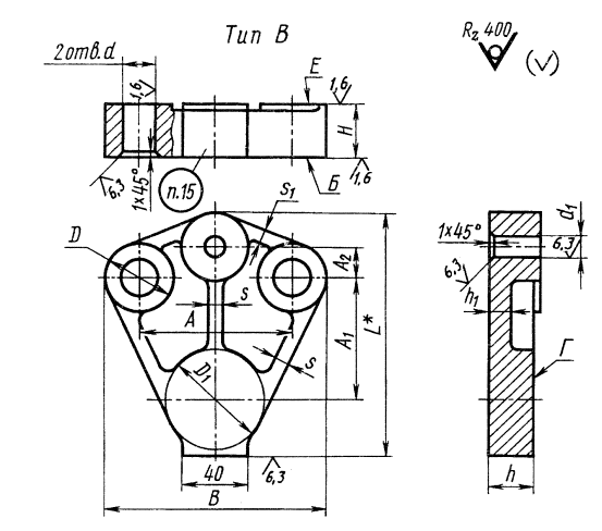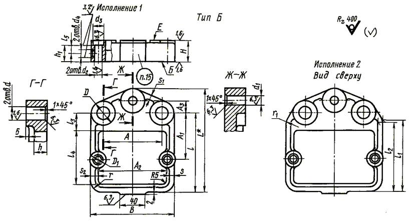 отклонения размеров: Н14, hl4, (Измененная редакция, Изм. № 1, 2). 11. Допуск параллельности поверхности Е относительно поверхности Б - 0,02 мм на длине 100 мм. 12. В плитах типов А и В допуск перпендикулярности осей отверстий d относительно поверхности Б - 0,02 мм на длине 100 мм, в плитах типа Б неперпендикулярность осей отверстий d и d2 относительно поверхности Б - 0,02 мм на длине 100 мм. 13. Резьба метрическая - по ГОСТ 24705. Поле допуска резьбы - 6Н по ГОСТ 16093. 11-13. (Измененная редакция, Изм. № 2). 14. Фаски под резьбу - по ГОСТ 10549. 15. Маркировать: обозначения плиты и настоящего стандарта. (Измененная редакция, Изм. № 2). 16. (Исключен, Изм. № 2). ИНФОРМАЦИОННЫЕ ДАННЫЕ 1. РАЗРАБОТАН И ВНЕСЕН Министерством станкостроительной и инструментальной промышленности СССР РАЗРАБОТЧИКИ А.З. Старосельский (руководитель темы), В.В. Андреев, В.А. Петрова, В.Д. Поляков, Л.Б. Смирнов, Т.А. Шестакова 2. УТВЕРЖДЕН И ВВЕДЕН В ДЕЙСТВИЕ Постановлением Государственного комитета стандартов Совета Министров СССР от 13.04.71 № 729 3. ВЗАМЕН МН 3234-62 - МН 3238-62 4. ССЫЛОЧНЫЕ НОРМАТИВНО-ТЕХНИЧЕСКИЕ ДОКУМЕНТЫ