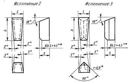 Дата введения 01.07.93 1. Настоящий стандарт распространяется на пластины для отрезных и прорезных резцов. 2. Конструкция и размеры пластин должны соответствовать указанным на черт. 1-2 и в табл. 1-2.