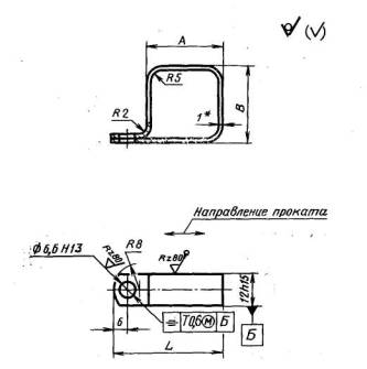 Пример условного обозначения серьги А=14 мм из стали марки 25, с покрытием Ц15.хр: Серьга 14 - 25-Ц15.хр ГОСТ 17680-80 То же, из стали марки 25, с покрытием Кд 15.хр: Серьга 14 - 25-Ц15.хр ГОСТ 17680-80 То же, из стали марки 12Х18Н10Т, с покрытием Хим.Пас: Серьга 14 - 12Х18Н10Т - Хим.Пас ГОСТ 17680-80 То же, из алюминиевого сплава марки Д16.А.М с покрытием Ан.Окс.нхр: Серьга 14 - Д16.АМ. - Ан.Окс.нхр ГОСТ 17680-80 2. Серьги должны изготовляться из: ленты 25-1×12 по ГОСТ 2284 или ленты 1-М-НТ-НО-12Х18Н10Т-3 по ГОСТ 4986 листа Д16.А.М-1 по ГОСТ 21631. Допускается изготовлять серьги из ленты 20-1×12 по ГОСТ 2284 или ленты 1-М-НТ-НО-12Х17Г9АН4-3 по ГОСТ 4986