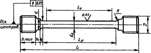 толщиной 3,0 мм и более от для цилиндрических образцов - от l0 + 0,5d0 до l0 + 2d0. В случаях разногласий в оценке качества труб рабочая длина образцов должна быть наибольшей. Для образцов, приведенных на черт. 1, 2 и 3, общая длина образцов (Lобщ) в зависимости от размеров рабочего пространства lн применяемого нагревательного устройства должна быть Lобщ ³ lн + 80. 1.7. Предельные отклонения по размерам рабочей части образцов должны соответствовать указанным в табл. 2. Таблица 2 мм