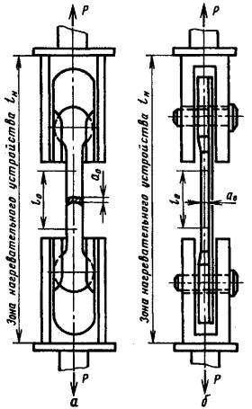 Примечание. Образцы диаметром 3 мм изготовляют по согласованию изготовителя с потребителем. 1.11. Трубы диаметром 426 мм и свыше допускается испытывать по ГОСТ 9651-84 на поперечных плоских образцах. 1.12. При испытании образцов в виде полосы допускается выправлять концы для зажима захватами машины. Выправление концов проводят за пределами рабочей длины образца. 1.13. Образцы рекомендуется обрабатывать на металлорежущих станках. Шероховатость поверхности цилиндрических образцов Ra должна быть не более 0,63 мкм, сегментных Rz - не более 20 мкм по ГОСТ 2789-73. 1.14. Измерение патрубков и сегментов до испытания проводят по ГОСТ 10006-80, цилиндрических образцов - по ГОСТ 9651-84. 1.15. Для труб с наружным диаметром до 10,0 мм включительно допускается определение площади поперечного сечения по номинальным размерам диаметра и толщины стенки. (Измененная редакция, Изм. № 1). 1.16. Маркировку образцов проводят вне рабочей части. 2. ОБОРУДОВАНИЕ2.1. Испытательные машины и условия испытания должны соответствовать требованиям ГОСТ 10006-80. 2.2. Нагревательное устройство должно обеспечивать равномерный нагрев образца по его рабочей части до заданной температуры испытания и поддержание этой температуры с учетом допускаемых отклонений, указанных в п. 3.5, на протяжении всего испытания. 2.3. Требования к регулирующим и измерительным приборам, первичным термоэлектрическим преобразователям (термопарам) по ГОСТ 9651-84. 2.2, 2.3. (Измененная редакция, Изм. № 1). 3. ПРОВЕДЕНИЕ ИСПЫТАНИЙ3.1. Испытания образцов проводят по ГОСТ 10006-80. Образцы в виде сегментов и патрубков испытывают до температуры 900 °С. Схема испытания сегментных образцов с головками (черт. 5) приведена в приложении 1. 3.2. Для измерения температуры испытания на образцы устанавливают термопары: при l0 £ 100 мм - две термопары (на границах расчетной длины образца). Допускается устанавливать одну термопару в середине расчетной длины при длине расчетной части образца до 50 мм. При возникновении разногласий в оценке качества труб контроль температуры для таких образцов проводят двумя термопарами; при l0 > 100 мм - три термопары (на границах и в середине расчетной длины образца). 3.3. Рабочий конец первичного термопреобразователя (термопары) должен иметь надежный контакт с поверхностью образца и быть изолированным от радиационного нагрева. Допускается измерять температуру образца термопарой касания при условии соответствия предельных отклонений температуры образца требованиям п. 3.5. 3.4. Продолжительность нагрева до заданной температуры испытания и время выдержки при этой температуре указывают в нормативно-технической документации на трубы. При отсутствии необходимых указаний продолжительность нагрева до температуры испытания должна составлять не более 1 ч, время выдержки при этой температуре - 20-30 мин. Допускается применять предварительный подогрев образцов до заданной температуры во вспомогательных печах с последующим переносом их для испытания в печь, установленную непосредственно на машине. Время выдержки после переноса при заданной температуре должно быть эквивалентно времени, затраченному на перенос: при времени переноса 1 с время выдержки должно составлять не менее 1 мин; при времени переноса 2 с - 2 мин и т.д. Образцы особотонкостенных труб (толщина стенки 0,5 мм и менее) испытываются в печах, установленных на машине, т.е. без пр