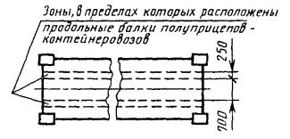Дата введения 01.01.82 Настоящий стандарт распространяется на закрытые и открытые универсальные среднетоннажные и крупнотоннажные контейнеры по ГОСТ 18477, предназначенные для прямых и смешанных внутренних и международных перевозок. Стандарт полностью соответствует международному стандарту ИСО 1496-1. (Измененная редакция, Изм. № 1, 3). 1. ТЕХНИЧЕСКИЕ ТРЕБОВАНИЯ1.1. Контейнеры должны изготовляться в соответствии с требованиями настоящего стандарта, ГОСТ 18477 по рабочим чертежам, утвержденным в установленном порядке, при этом ни одна часть конструкции контейнера не должна выступать за пределы внешних размеров по ГОСТ 18477. Климатическое исполнение - У, категория 1 по ГОСТ 15150 с учетом требований к подвижному составу. Крупнотоннажные контейнеры должны, кроме того, отвечать действующим Правилам Регистра СССР по контейнерам, а также требованиям Международной конвенции по безопасным контейнерам ООН/ИМО, 1972 г. (КБК), и Таможенной конвенции, касающейся контейнеров, 1972 г. (ТКК). Примечание. Среднетоннажные контейнеры по согласованию между изготовителем и заказчиком допускается изготовлять в климатическом исполнении У категории 1 по ГОСТ 15150 без учета требований к подвижному составу. (Измененная редакция, Изм. № 3). 1.2. Конструкция контейнеров должна обеспечивать: надежность и удобство в эксплуатации при прогрессивных удельных затратах материалов на изготовление контейнеров на единицу грузоподъемности и вместимости; возможность штабелирования груженых среднетоннажных контейнеров в 3 яруса, крупнотоннажных контейнеров в 9 ярусов, а по согласованию между изготовителем и заказчиком - не менее чем в 6 ярусов; сохранность груза при транспортировании, хранении и перегрузке контейнеров при условии выполнения правил эксплуатации; удобство промывки, очистки, выполнения ремонтов, крепления грузов, технического и коммерческого осмотров; невозможность извлечения груза из контейнера (закрытого или открытого с закрепленным тентом или съемной крышей) или загрузки в него груза без оставления видимых следов взлома или повреждения таможенных печатей и пломб; наложение печатей и навеску пломб на закрытые контейнеры и открытые, оборудованные тентом или съемной крышей; отсутствие потайных мест для скрытия груза; легкую доступность всех мест, где может помещаться груз, для таможенного досмотра. (Измененная редакция, Изм. № 3). 1.3. Контейнеры должны иметь: двустворчатую дверь с эластичным уплотнением и запорными устройствами - закрытые контейнеры и открытые с тентом или съемной крышей; двустворчатую дверь с запорными устройствами - открытые контейнеры без тента или съемной крыши высотой 1580 мм и более; двустворчатую дверь или заменяющую ее откидную торцевую стенку с запорными устройствами - открытые контейнеры без тента или съемной крыши типоразмеров 1АХ, 1СХ и 1DX высотой менее 1580 мм; рымные узлы по ГОСТ 18579 - среднетоннажные закрытые контейнеры; рымные узлы по утвержденной в установленном порядке конструкторской документации - среднетоннажные открытые контейнеры; угловые фитинги по ГОСТ 20527 - крупнотоннажные контейнеры; опорные (контактные) площадки на торцевых и промежуточных поперечных балках основания для передачи нагрузки на продольные балки полуприцепа, расположенные в пределах двух зон шириной 250 мм каждая (черт. 1 приложения 1) - контейнеры типора