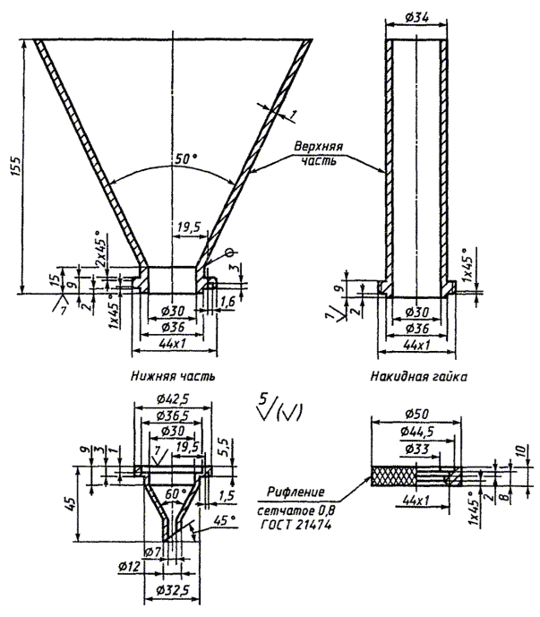 Постановлением Государственного комитета стандартов Совета Министров СССР от 21 августа 1975 г. № 2209 дата введения установлена Ограничение срока действия снято Постановлением Госстандарта от 28.11.91 № 1834 Настоящий стандарт распространяется на топливо для реактивных двигателей и устанавливает метод определения мыл нафтеновых кислот. Сущность метода заключается в фильтровании испытуемого топлива через мембранный фильтр, гидролизе мыл, содержащихся в полученном осадке, и фиксировании окраски водного раствора в присутствии фенолфталеина. Стандарт соответствует полностью СТ СЭВ 757-77. (Измененная редакция, Изм. № 1). 1. АППАРАТУРА, РЕАКТИВЫ И МАТЕРИАЛЫ1.1. Для определения мыл нафтеновых кислот применяют: воронки для фильтрования с цилиндрической или конической верхней частью (черт. 1) из нержавеющей стали (внутренние поверхности всех деталей воронки - полированные), верхняя часть воронки соединяется с нижней частью накидной гайкой; сетки латунные тканые с квадратными ячейками нормальной точности № 016-02 по ГОСТ 6613-86, вырезанные в виде кругов наружным диаметром 35 мм, под мембранные фильтры; прокладки хлорвиниловые или фибровые толщиной 0,3 - 0,5 мм, вырезанные в виде кольца с наружным диаметром 35 мм и внутренним диаметром 30 мм; стекла часовые диаметром 40 - 50 мм или стекла обычные того же диаметра; колбы конические по ГОСТ 25336-82, вместимостью 500 см3; стаканы по ГОСТ 25336-82, вместимостью 50 см3; бюретку 1-1-0,01 или 2-1-0,01 или 3-1-0,01 по ГОСТ 29251-91, любого класса точности; промывалку с резиновой грушей; колпак стеклянный или чашку кристаллизационную цилиндрическую с наружным диаметром 150 - 200 мм по ГОСТ 25336-82; Воронка для фильтрования вставку для эксикатора 1-128 по ГОСТ 9147-80 или вставку для эксикатора 1-175 по ГОСТ 9147-80, являющуюся подставкой для стеклянного колпака или кристаллизационной чашки (черт. 2); Кристаллизационная чашка со вставкой для эксикатора палочку стеклянную длиной 150 - 200 мм, диаметром 4 - 5 мм с наконечником из хлорвиниловой трубки длиной 15 - 20 мм; фильтры мембранные (нитроцеллюлозные) № 4 и 5: фильтр № 4 - для фильтрования топлив с кинематической вязкостью при 20 °С до 20-6 м2/с (2 сСт) включительно, фильтр № 5 - для фильтрования топлив с кинематической вязкостью при 20 °С более 20-6 м2/с (2 сСт); растворители - изооктан эталонный по ГОСТ 12433-83 или бензиновая фракция, выкипающая до 100 °С; кислоту соляную по ГОСТ 3118-77, 0,01 моль/дм3 (0,01 н.) раствор; фенолфталеин (индикатор) по нормативному документу, 1 %-ный спиртовой раствор; воду дистиллированную по ГОСТ 6709-72. (Измененная редакция, Изм. № 1, 2). 2. ПОДГОТОВКА К ИСПЫТАНИЮ2.1. Дистиллированную воду проверяют на нейтральность: 5 см3 дистиллированной воды и 2 - 3 капли фенолфталеина кипятят в стакане 2 мин. Воду подвергают вторичной перегонке, если остаток в стакане после упаривания окрашен в розовый цвет. 2.2. Растворитель фильтруют через мембранный фильтр того же номера, что и топливо при проведении испытания. 2.3. В колбу, вымытую, высушенную и закрывающуюся корковой пробкой, обернутой хлорвиниловой или пластмассовой пленкой, стойкой к воздействию топлив и неотделяющей механических примесей, берут 400 см3 испытуемого топлива из тщательно перемешанной в течение 3 мин пробы. 2.4. Внутреннюю поверхность воронки для фильтрования, сетку под мембранный фильтр и прокладки для удаления с них механических примесей тщательно протирают чистой тр