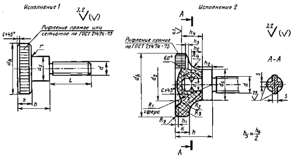 винтов должны соответствовать указанным на чертеже и в табл. 1 и 2.