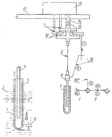 Дата введения 01.01.93 1. НАЗНАЧЕНИЕ И ОБЛАСТЬ ПРИМЕНЕНИЯНастоящий стандарт устанавливает методы определения времени желатинизации ненасыщенных полиэфирных смол при температуре 25 °С. Настоящие методы распространяются на все смолы, но предпочтительными являются для смол холодного отверждения. Дополнительные требования, отражающие потребности народного хозяйства, выделены курсивом. 2. СУЩНОСТЬ МЕТОДАГотовят смесь смолы при температуре 25 °С с установленным количеством стандартного ускорителя и инициатора. Полученную смесь помещают в пробирку установленных размеров, которую погружают в баню с температурой 25 °С. Прибор, оказывающий минимальное влияние на вискозиметрические свойства смеси, используется для определения точного времени, при котором вязкость достигает 50 Па·с (500 пуаз) (условная вязкость, соответствующая началу состояния желатинизации). Общее время с момента добавления ускорителя и инициатора до момента, при котором вязкость достигает значения 50 Па·с, условно называется «Время желатинизации при 25 °С». Примечание. Тип, количество ускорителя и инициатора и температура, приведенные в настоящем стандарте, являются стандартными условиями. В особых случаях могут быть установлены другие условия по согласованию сторон (см. п. 7). 3. РЕАКТИВЫ3.1. Ацетон по ГОСТ 2603. 3.2. Стандартный ускоритель - раствор октоата кобальта в толуоле. В химический стакан отвешивают (5 ± 0,01) г исходного раствора октоата кобальта в инертном растворителе, содержащего 6 % металлического кобальта. Переносят содержимое и колбу с притертой пробкой вместимостью 50 мл и разбавляют до 50 мл толуолом. 1 мл этого раствора соответствует 0,100 г исходного раствора октоата кобальта. Допускается применять в качестве ускорителя нафтенат кобальта НК-3 в количестве, соответствующем содержанию 6 % металлического кобальта. Ускорители: раствор октоата кобальта в толуоле или нафтенат кобальта НК-3 указываются в нормативно-технической документации на ненасыщенные полиэфирные смолы. Раствор хранят на холоде и используют в течение одного месяца с момента приготовления или получения. Примечания: 1. Торговая перекись метилэтилкетона представляет собой смесь изомеров в разных пропорциях и два торговых продукта с одинаковым процентным содержанием кислорода могут дать различные результаты испытания (см. п. 8). 2. Нельзя смешивать перекись метилэтилкетона и раствор октоата кобальта, так как образуется взрывчатая смесь. Каждый компонент смешивают в отдельности с полиэфирной смолой. 4. АППАРАТУРА4.1. Стеклянная пробирка для испытуемой смеси минимальной длиной 120 мм, внутренним диаметром 18 мм, с хорошо подогнанной пробкой. Допускаются пробирки стеклянные с внутренним диаметром (18 ± 0,15) мм, толщиной стенки (1,5 ± 0,05) мм и длиной 180 мм. 4.2. Устройство для измерения вязкости Устройство для измерения вязкости не должно оказывать влияния на реологические свойства смеси. Примечание. Описание такого устройства (см. чертеж) приводится в качестве примера. Стеклянную палочку достаточной длины, диаметром 6 мм погружают в смесь на глубину 50 мм, поворачивают вокруг собственной оси с небольшой скоростью (1 - 2 мин-1) при помощи проволоки, приводимой в действие электродвигателем с редуктором. Измеряют время, в течение которого проволока закручивается на угол, соответствующий вязкости 50 Па·с (500 пуаз). 