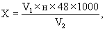 где V1 - объем раствора титранта, израсходованный на титрование, см3; н - нормальность раствора титранта; 48 - грамм-эквивалент сульфат-иона; V2 - объем воды, взятый на анализ, см3. За окончательный результат принимают среднее арифметическое трех параллельных определений, допускаемые расхождения между которыми не должны превышать 2,5 % Содержание