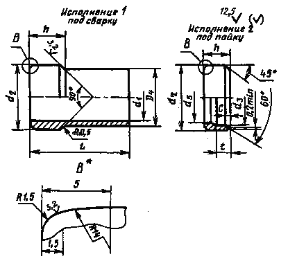 * Форма ниппеля на выносном элементе В - рекомендуемая. Размеры в мм