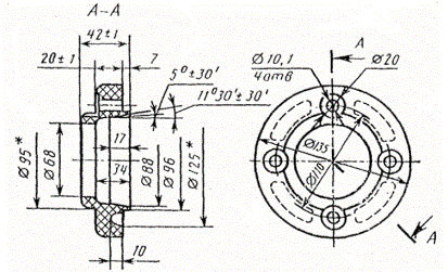 Дата введения 01.07.81 Несоблюдение стандарта преследуется по закону 1. Настоящий стандарт распространяется на фланцы, применяемые для соединения стеклянных труб с гладкими концами. Требования настоящего стандарта являются обязательными. (Измененная редакция, Изм. № 2). 2. Конструкция и основные размеры фланцев должны соответствовать чертежу. Пример условного обозначения фланца для трубы наружным диаметром Dh = 67 мм: Фланец 67 ГОСТ 24186-80 3. Материал фланцев - пресс-материал ГСП-400 по нормативно-технической документации на него. (Измененная редакция, Изм. № 2). 4. Технические требования - по ГОСТ 24201-80. ПРИЛОЖЕНИЕ