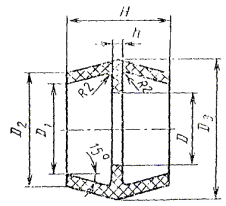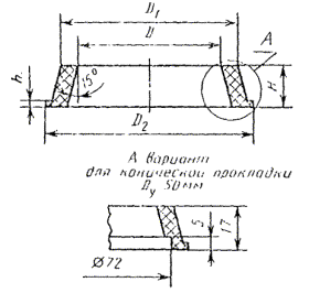 Пример условного обозначения составной прокладки для трубы Dy = 25 мм, D = 50 мм: Прокладка составная 25-50 ГОСТ 24188-80 4г. Конструкция и основные размеры манжетообразных прокладок должны соответствовать указанным на черт. 7. Масса - 0,015 кг Масса - 0,022 кг Пример условного обозначения манжетообразной прокладки исполнения 1: Прокладка манж. обр. 1 ГОСТ 24188-80 То же, исполнения 2: Прокладка манж. обр. 2 ГОСТ 24188-80 4д. Конструкция и основные размеры конических прокладок для буртовых труб должны соответствовать указанным на черт. 8 и в табл. 7. Таблица 7 Размеры в мм