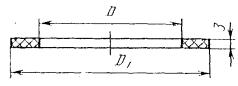 * Прокладка предназначена для соединения конических клапанов с трубами с гладкими концами. Примечание. Масса указана для корда плотностью 1,43 г/см3. Пример условного обозначения конической прокладки для трубы с коническими буртами Dу = 50 мм: Прокладка кон. 50 ГОСТ 24188-80 То же, для исполнения 1: Прокладка кон. 50-1 ГОСТ 24188-80 То же, для соединения конических клапанов с трубами с гладкими концами: Прокладка кон. соед. 80 ГОСТ 24188-80 4е. Конструкция и основные размеры плоских прокладок должны соответствовать указанным на черт. 9 и в табл. 8. Таблица 8 Размеры в мм