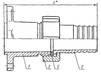 Дата введения 01.07.91 Несоблюдение стандарта преследуется по закону 1. Настоящий стандарт распространяется на патрубки, применяемые при монтаже стеклянных трубопроводов. Требования настоящего стандарта являются обязательными. (Измененная редакция, Изм. № 3). 2. Патрубки должны быть изготовлены двух типов: 1 - для соединения стеклянных трубопроводов; 2 - для соединения стеклянных трубопроводов кровельного отопления к металлическим трубопроводам. Патрубки типа 1 должны изготовляться 2-х исполнений. (Новая редакция, Изм. № 3). 3. Конструкция и основные размеры патрубков типа 1 должны соответствовать указанным на черт. 1 и в табл. 1. Тип 1 Исполнение 1 Исполнение 2 * Размеры для справок. 1 - переходник; 2 - штуцер; 3 - накидная гайка; 4 - заглушка; 5 - прокладка Таблица 1 Размеры в мм