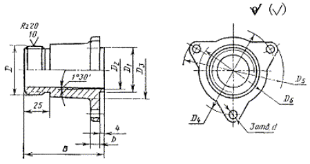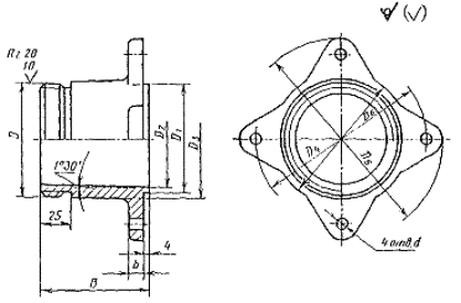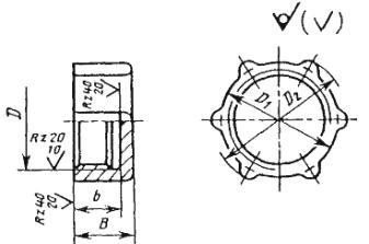 Пример условного обозначения штуцера для трубы наружным диаметром Dн = 45 мм: Штуцер 45 ГОСТ 24190-80 6. Конструкция и основные размеры накидной гайки должны соответствовать указанным на черт. 4 и в табл. 4. Таблица 4 Размеры в мм