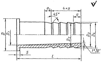 Пример условного обозначения патрубка для трубы наружным диаметром Dн = 45 мм тип 1 исполнения 1: Патрубок 1-1-45 ГОСТ 24190-80 То же, исполнения 2: Патрубок 1-2-45 ГОСТ 24190-80 (Измененная редакция, Изм. № 3). 4. Конструкция и основные размеры переходника должны соответствовать указанным на черт. 2 и в табл. 2. Для труб Dн = 45 мм Для труб Dн = 67, 93, 122 мм Для труб Dн = 169 мм Размеры в мм