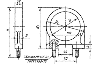 (Измененная редакция, Изм. № 2). Пример условного обозначения охватывающего хомута Исполнение 1 для трубы наружным диаметром DH = 45 мм: Хомут 1-45 ГОСТ 24194-80 (Измененная редакция, Изм. № 2). 3. Материал хомутов - фенопласт марки У2-301-07 по ГОСТ 5689-79, прессматериал ГСП-400 по нормативно-технической документации. (Измененная редакция, Изм. № 2). 4. Технические требования - по ГОСТ 24201-80. 5. Коды ОКП приведены в приложении. (Введен дополнительно, Изм. № 2). ПРИЛОЖЕНИЕ Справочное