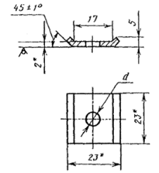 Дата введения 01.07.81 (Измененная редакция, Изм. № 2). 1. Настоящий стандарт распространяется на квадратные шайбы, применяемые для крепления стеклянных трубопроводов. Требования настоящего стандарта являются обязательными. (Измененная редакция, Изм. № 2). 2. Конструкция и основные размеры квадратных шайб должны соответствовать указанным на чертеже и в таблице. * Размеры для справок. Размеры в мм