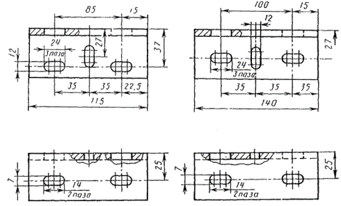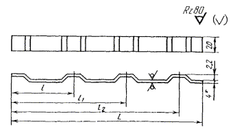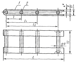 Пример условного обозначения скобы кронштейна длиной L = 450 мм, исполнения 1, 2, из стали марки Ст3кп: Скоба 450 ГОСТ 24198-80 То же, из стали марки Ст3сп: Скоба 450-С ГОСТ 24198-80 То же, исполнения 3 из стали марки Ст3кп: Скоба 3-450 ГОСТ 24198-80 То же, из стали марки Ст3сп: Скоба 3-450-С ГОСТ 24198-80 То же, исполнения 4 из стали марки Ст3кп: Скоба 4-450 ГОСТ 24198-80 То же, из стали марки Ст3сп: Скоба 4-450-С ГОСТ 24198-80 5. Конструкция и основные размеры распорок (исполнения 3, 4) должны соответствовать указанным на черт. 3. Масса 0,05 кг, не более 5а. Конструкция и основные размеры кронштейнов типа 2 должны соответствовать указанным на черт. 4 и в табл. 3. Тип 2 Исполнение 1 Исполнение 2 Таблица 3 Размеры и мм
