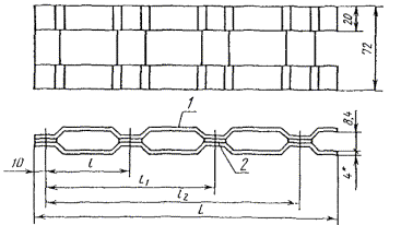 Дата введения 01.07.81 (Измененная редакция, Изм. № 2). Несоблюдение стандарта преследуется по закону 1. Настоящий стандарт распространяется на кронштейны, применяемые для крепления стеклянных трубопроводов. Требования настоящего стандарта являются обязательными. (Измененная редакция, Изм. № 2). 2. Кронштейны должны быть изготовлены двух типов: 1 - для крепления стеклянных трубопроводов; 2 - для крепления стеклянных трубопроводов в теплицах и холодильниках. Кронштейны типа 1 должны изготовляться 4-х исполнений; кронштейны типа 2 - 2-х исполнений: 1 - кронштейн ОВН - для крепления стеклянных трубопроводов кровельного обогрева в теплицах; 2 - кронштейны ТХН - для крепления потолочных и пристенных батарей из стеклянных труб холодильников. (Новая редакция, Изм. № 2). 3. Конструкция и основные размеры кронштейнов типа 1 должны соответствовать указанным на черт. 1 и в табл. 1. (Измененная редакция, Изм. № 2). Тип 1 Исполнение 1 Исполнение 2 Исполнение 3 Исполнение 4 1 - скоба; 2 - распорка * Размер для справок. (Измененная редакция, Изм. № 2). Таблица 1 Размеры в мм