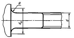 Примечания: 1. Размер da - диаметр окружности, образованной при сопряжении галтели радиусом R с опорной плоскостью головки болта, винта или шурупа. 2. Для шурупов размеры R и da принимают, как правило, по классу точности С. 3. В пределах диаметра da допускается сопряжение стержня с головкой дугами нескольких радиусов и другими кривыми. |
