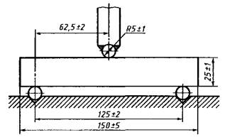 где F - сила, действующая в момент разрушения, Н; l - расстояние между опорами, мм; b - ширина образца, мм; h - высота образца, мм. За результат испытания принимают среднее арифметическое значение результатов испытаний трех образцов, которое округляют до 0,1 Н/мм2. В случае отклонения результатов отдельных испытаний от среднего значения более чем на 35 % испытание повторяют на таком же количестве образцов из того же изделия. Результат повторного испытания считается окончательным. При прогибе образцов без разрушения более чем на 2 мм результаты испытаний следует считать недействительными. В этом случае в протоколе испытания указывается, что при данной температуре испытания материал претерпевает пластическую деформацию. (Измененная редакция, Изм. № 1). 4.2. Расхождения результатов определения прочности при изгибе для одного изделия в одной лаборатории не должны превышать ± 15 %, в различных лабораториях - ± 20 %. 4.3. Результаты испытания записывают в протокол, в котором указывают: наименование материала или изделия и его марку; размеры испытываемых образцов; температуру испытания; прочность при изгибе (отдельные измерения и среднее арифметическое); обозначение настоящего стандарта; дату и место проведения испытания; подпись исполнителя. СОДЕРЖАНИЕ