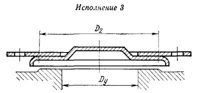 Постановлением Государственного комитета СССР по стандартам от 30 декабря 1982 г. № 5312 срок действия установлен с 01.01.85 до 01.01.90 Несоблюдение стандарта преследуется по закону 1. Настоящий стандарт распространяется на крышки люков цистерн (далее - крышки) климатических исполнений У, УХЛ и Т категории 1 по ГОСТ 15150-69, с рабочим давлением не более 0,05 МПа, предназначенных для светлых нефтепродуктов и устанавливаемых на автомобильных средствах транспортирования и заправки. Пояснения терминов, применяемых в стандарте, приведены в справочном приложении 1. 2. Крышки следует изготовлять двух типов: КО - откидная, КС - съемная, и в зависимости от конструкции узла уплотнения четырех исполнений: 1 - с шипом на пристыковочной поверхности (при размещении уплотнительного элемента в пазу люка), 2 - с пазом на пристыковочной поверхности под уплотнительный элемент, 3 - с плоской пристыковочной поверхностью под уплотнительный элемент, 4 - с пристыковочной поверхностью, соответствующей форме уплотнительного элемента. При выборе конструктивного исполнения крышек следует предпочитать исполнение 1 исполнению 2, исполнение 2 исполнению 3. 3. Крышки следует изготовлять в соответствии с требованиями настоящего стандарта и нормативно-технической документации по рабочим чертежам, утвержденным в установленном порядке. 4. Параметрический ряд Dу откидных крышек всех исполнений - 100, 125, 160, 200, 250, 300, 400 и 500 мм. Конструкция и основные размеры откидных крышек исполнений 1 - 3 приведены в рекомендуемом приложении 2. Конструкцию и основные размеры крышек исполнения 4 устанавливают в нормативно-технической документации. 5. Параметрический ряд Dу съемных крышек указан в таблице. Съемные крышки люков исполнений 1 - 3 должны соответствовать указанным на чертеже и в таблице. При выборе размеров съемных крышек следует предпочитать ряд 1 ряду 2. Пример условного обозначения откидной крышки исполнения 1 для люка с диаметром условного прохода Dу 100 мм: Крышка люка КО-1-100 ГОСТ 25570-82 То же, съемной крышки исполнения 1 для люка с диаметром условного прохода Dу 400 мм: Крышка люка КС-1-400 ГОСТ 25570-82 6. Конструктивный внутренний диаметр люка (размер «в свету») не должен отличаться от номинального более чем на 3 %. 7. Отверстия диаметром d - по ГОСТ 112841-75. Отверстия под болты или шпильки для удобства монтажа следует располагать симметрично главным осям люка. 8. В конструкции съемной крышки должно быть предусмотрено устройство (ручка, скоба и др.) для ее безопасного подъема и перемещения. Такие устройства на откидных крышках устанавливают по согласованию с потребителем. 9. Предельные отклонения от номинальных размеров - по ГОСТ 25346-82: а11 или b12 (допускается h12) - для D4 и D5; h14 - для D; Н12 - для D3 и D6; Н14 - для d и D1. Смещение осей отверстий от номинального расположения - по ГОСТ 14140-81. Отклонение от плоскостности пристыковочной поверхности Б крышек - по ГОСТ 24643-81 (при отсутствии особых требований). Для крышек исполнения 2 допускается отклонение от плоскостности пристыковочной поверхности устанавливать в нормативно-технической документации на крышки. 10. Конструкцией узла уплотнения должна быть обеспечена герметичность крышек при избыточном давлении, при котором цистерну испытывают на прочность. 11. Масса съемной крышки люка-лаза не должна быть более 30 кг, люка со специальным оборудованием, используемого также в качес