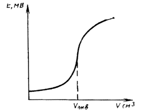 Постановлением Государственного комитета СССР по стандартам от 19 декабря 1983 г. № 6728 срок действия установлен с 01.01.85 до 01.01.90 Несоблюдение стандарта преследуется по закону Настоящий стандарт устанавливает метод определения кислотного числа в кубовом остатке синтетических жирных кислот (СЖК), образующемся при их производстве. Сущность метода заключается в потенциометрическом титровании пробы спиртовым раствором гидроокиси калия в хлороформе. По кривым потенциометрического титрования устанавливают точку эквивалентности, соответствующую полной нейтрализации кислот и карбоксилсодержащих соединений. 1. МЕТОД ОТБОРА ПРОБ1.1. Отбор проб - по ГОСТ 2517-80. 2. АППАРАТУРА, МАТЕРИАЛЫ И РЕАКТИВЫВесы лабораторные по ГОСТ 24104-80 класса точности 2 или аналогичного типа. рН-метр типа 340 и 121, манометр универсальный ЭВ-74 или другой аналогичной конструкции со стеклянным и хлорсеребряным электродами. Мешалка магнитная ММЗМ или другого типа. Стакан химический по ГОСТ 23932-79 вместимостью 100 см3. Бюретка по ГОСТ 20292-74 вместимостью 25 см3. Цилиндр мерный по ГОСТ 1770-74 вместимостью 50 см3. Спирт этиловый ректификованный технический по ГОСТ 18300-72. Калия гидроокись по ГОСТ 24363-80, ч. д. а., спиртовый раствор 0,1 моль/дм3. Хлороформ по ГОСТ 20015-74 или фармакопейный. 3. ПОДГОТОВКА К ИСПЫТАНИЮ3.1. Подготовку рН-метра к работе проводят в соответствии с инструкцией по эксплуатации. Электроды выдерживают в дистиллированной воде не менее 5 мин, вынимают из воды, обезвоживают, для чего опускают электроды в стакан со спиртом, вынимают и протирают фильтровальной бумагой. 3.2. Определяют массу анализируемого продукта около 1 г в стакане для титрования с погрешностью не более 0,0002 г. Необходимое условие при выборе массы продукта - объем титранта должен быть в пределах 7 - 100 см3. 4. ПРОВЕДЕНИЕ ИСПЫТАНИЯ4.1. В стакан с анализируемым продуктом приливают 30 см3 хлороформа в два-три приема при периодическом перемешивании смеси до полного растворения продукта. Стакан помещают на титровальный столик, опускают в раствор электроды и мешалку для перемешивания раствора. 4.2. Включают мешалку и титруют анализируемый продукт спиртовым раствором гидроокиси калия. Раствор гидроокиси добавляют по 0,2 - 0,1 см3, каждый раз тщательно перемешивают испытуемый раствор и регистрируют показания прибора (потенциал в милливольтах). По полученным результатам строят график зависимости потенциала от объема добавленной гидроокиси калия. 4.3. После каждого определения электроды промывают хлороформом, а после титрования электроды, промытые спиртом и водой, опускают в стакан с дистиллированной водой. 5. ОБРАБОТКА РЕЗУЛЬТАТОВ5.1. Эквивалентный объем раствора гидроокиси калия 0,1 моль/дм3 (Vэкв) в см3, израсходованный на титрование навески анализируемого продукта, определяют графически, как показано на чертеже. 5.2. Кислотное число (X) в мг КОН/г вычисляют по формуле