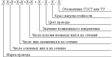 Примечание. Система условного обозначения провода не распространяется на провода, разработанные до 01.01.87. Пример условного обозначения провода: марки ПГРРМЭ с тремя основными жилами номинальным сечением 1,5 мм2 на напряжение 660 В: ПГРРМЭ 3´1,5 - 660 ГОСТ*... * Номер НТД на конкретную марку провода. марки ПГРР-УХЛ с тремя основными жилами номинальным сечением 4 мм2 и одной вспомогательной жилой сечением 2,5 мм2 на напряжение 220 В: ПГРР-УХЛ 3´4 + 1´2,5 - 220 ГОСТ*... * Номер НТД на конкретную марку провода. марки ПГРТО сечением 4,0 мм2 на напряжение 660 В класса нагревостойкости Н: ПГРТО 4,0-660 Н ГОСТ*... * Номер НТД на конкретную марку провода. 2. ТЕХНИЧЕСКИЕ ТРЕБОВАНИЯ2.1. Провода изготовляют в соответствии с требованиями настоящего стандарта и стандартов или технических условий на провода конкретных марок по конструкторской и технологической документации, утвержденной в установленном порядке. 2.2. Провода изготовляют в климатических исполнениях: У, УХЛ, В и Т по ГОСТ 15150-69. Климатическое исполнение и категория размещения проводов должны быть указаны в стандартах или технических условиях на провода конкретных марок. 2.3. Провода в исполнениях Т и УХЛ должны соответствовать нормативно-технической документации. 2.4. Требования к конструкции 2.4.1. Конструктивные элементы и основные размеры проводов должны быть указаны в стандартах и технических условиях на провода конкретных марок. 2.4.2. Токопроводящие медные, медные луженые и алюминиевые жилы должны соответствовать ГОСТ 22483-77 и нормативно-технической документации на провода конкретных марок. Токопроводящие жилы должны соответствовать классу: 1 - для жил нормальной гибкости; 2-4 - для жил повышенной гибкости; 5-6 - для жил высокой гибкости. Класс токопроводящих жил должен быть указан в стандартах или технических условиях на провода конкретных марок. 2.4.3. Требования к токопроводящим медным герметизированным, алюмомедным жилам и жилам из нихромовой и стальной оцинкованной проволоки должны быть указаны в стандартах или технических условиях на провода конкретных марок. 2.4.4. Номинальная толщина резиновой, поливинилхлоридной и полиэтиленовой изоляции жил должна соответствовать ГОСТ 23286-78. Категория изоляции должна быть указана в стандартах или технических условиях на провода конкретных марок. Номинальная толщина бумажной, пленочной изоляции и изоляционно-защитной оболочки должна быть указана в стандартах или технических условиях на провода конкретных марок. На поверхности изоляции не должно быть вмятин, наплывов, шероховатостей, выводящих толщину изоляции за предельные отклонения. 2.4.5. Изоляция должна свободно отделяться от токопроводящей жилы, что должно быть указано в стандартах и технических условиях на провода конкретных марок. 2.4.6. Изолированные жилы многожильных проводов должны отличаться друг от друга. Отличительные признаки жил проводов должны быть указаны в стандартах или технических условиях на провода конкретных марок. 2.4.7. Номинальная толщина резиновой, поливинилхлоридной и полиэтиленовой оболочки должна соответствовать ГОСТ 23286-78. Вмятины, наплывы, утолщения и ребристость на оболочке не должны выводить ее за предельные отклонения по ГОСТ 23286-78. Допускается наличие на поверхности оболочки талька, отпечатков от лент, оплетки и обмотки. Материал и категория номинальной толщины оболочки должны