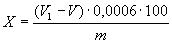 4. МЕТОДЫ ОПРЕДЕЛЕНИЯ КАЛЬЦИЯ4.1. Комплексонометрический метод4.1.1. Сущность метода Кальций титруют в щелочной среде (рН 12) раствором трилона Б с индикатором-мурексидом. Влияние железа, алюминия, меди, карбонатов и гидрокарбонатов устраняют, как указано в ГОСТ 26449.1-85, разд. 10. В присутствии фосфора применяют перманганатометрический метод по п. 4.2. Метод применяют при определении массовой доли кальция от 0,50 % и более. Нижний предел обнаружения составляет 0,25 %. 4.1.2. Аппаратура, реактивы и растворы - по ГОСТ 26449.1-85, разд. 11. 4.1.3. Проведение анализа Объем исходного раствора из мерной колбы после отделения кремниевой кислоты (см. п. 3.3), содержащий 2-20 мг кальция, помещают в коническую колбу, нейтрализуют раствором гидроокиси натрия до рН 7, добавляют 90-100 см3 дистиллированной воды и далее проводят анализ, как указано в ГОСТ 26449.1-85, разд. И. 4.1.4. Обработка результатов 4.1.4.1. Массовую долю кальция Х в процентах вычисляют по формуле: