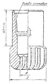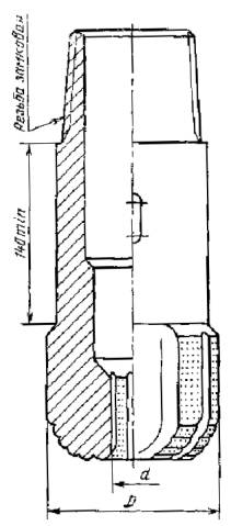 *До 01.01.89- для головок, оснащенных сверхтвердыми композиционными материалами. **Резьба укороченная. Пример условного обозначения бурильной головки для керноприемных устройств с несъемным керноприемником наружным диаметром D = 188,9 мм, внутренним диаметром d = 80 мм для бурения пород средней твердости: Головка бурильная 188,9/80 С ГОСТ 26474-85 5. Основные размеры бурильных головок со съемным керноприемником должны соответствовать приведенным на черт. 3 и в табл. 4. Размеры в мм