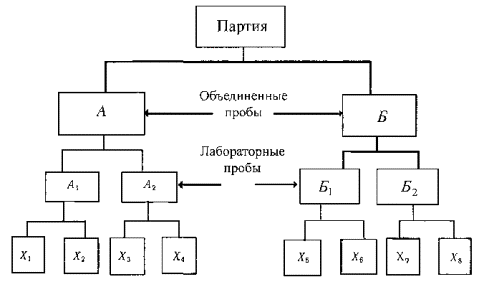 Постановлением Государственного комитета СССР по стандартам от 21 июня 1985 г. № 1844 дата введения установлена Ограничение срока действия снято по протоколу № 3-93 Межгосударственного совета по стандартизации, метрологии и сертификации (ИУС 5-6-93) Настоящий стандарт устанавливает методы отбора и подготовки проб для испытаний неформованных огнеупоров (масс, смесей, порошков различного назначения, в том числе заправочных, заполнителей, мертелей, цементов, порошковых и кусковых полуфабрикатов). Метод предусматривает опробование складированного или находящегося в движении материала путем отбора и смешения точечных проб и последующей подготовки лабораторной пробы. Стандарт не распространяется на огнеупорное сырье. Стандарт соответствует СТ СЭВ 1511-89 в части неформованных огнеупоров. (Измененная редакция, Изм. № 1). 1. ОБЩИЕ ПОЛОЖЕНИЯ1.1. Точечные пробы отбирают от каждой контролируемой партии равномерно по массе или по времени, как правило, в процессе погрузочно-разгрузочных работ. Пробы отбирают от материалов без упаковки и в упакованном виде. 1.2. Отбор проб проводят механизированным или ручным способом. 1.3. Термины, применяемые в стандарте, и пояснения к ним приведены в приложении 1. 2. АППАРАТУРА2.1. Для механизированного отбора проб применяют пробоотборники различных конструкций (секторные, ковшевые, лотковые и др.), удовлетворяющие следующим требованиям: пробоотбирающее устройство должно пересекать весь поток материала с постоянной скоростью и в равные промежутки времени. При отборе проб от материала крупностью до 1 мм допускается частичное пересечение потока; емкость пробоотбирающего устройства должна быть достаточной для отбора всей массы точечной пробы за одну отсечку при заполнении не более чем на 3/4 объема; ширина щели между отсекающими краями пробоотбирающего устройства должна быть не менее трех диаметров максимального куска материала; конструкция пробоотборника должна быть удобной для очистки и проверки; электросхема пробоотборников должна обеспечивать автоматическое или дистанционное управление, изменение интервала времени между отборами точечных проб; пульты управления пробоотборниками должны быть сблокированы системой управления транспортными механизмами. 2.2. Для ручного отбора проб применяют: металлические щупы произвольной конструкции, обеспечивающие захват материала данной крупности в количестве, приблизительно равном точечной пробе; металлические совки, обеспечивающие отбор точечных проб установленной массы; молотки массой от 0,4 до 0,9 кг; тару необходимой вместимости для сбора точечных проб. 2.3. При подготовке проб применяют: дробилки, мельницы и истиратели, соответствующие размерам зерен и твердости материала; набор сит с размером отверстия сеток, отвечающих крупности дробления и измельчения; механические и ручные делители (желобчатые, радиально-щелевые и т.п.); весы лабораторные; лопаты, совки. 3. ПОДГОТОВКА К ОТБОРУ ПРОБ3.1. Массу партии и максимальный размер зерен устанавливают по нормативно-технической документации на опробуемую продукцию. Определяют массу точечной пробы по п. 3.2, коэффициент вариации и категорию однородности материала - по п. 3.3; число точечных проб от партии - по п. 3.4. 3.2. Масса точечной пробы 3.2.1. Массу точечной пробы, отбираемой механическим пробоотборником из потока продук