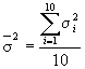 2.3. Дисперсию проб всех 10 партий и среднюю дисперсию вычисляют по формулам: