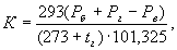 5.3. Для определения высшей теплоты сгорания (Qв) при пересечении стрелкой газового счетчика нулевой отметки воду из теплообменника трехходовым краном направляют в сосуд для сбора воды. Во время сбора воды через равные промежутки времени проводят 10 измерений температуры воды на входе и выходе из теплообменника с погрешностью не более 0,01 °С. После прохождения через теплообменник объема газа, приведенного в табл. 2, трехходовой кран переключают в исходное положение. Для определения высшей теплоты сгорания проводят три серии измерений. После окончания каждой серии измерений объем собранной воды взвешивают с погрешностью не более 1 г. Для измерения низшей теплоты сгорания сбор конденсата прекращают после прохождения через газовый счетчик от 30 до 60 дм3 газа и взвешивают измерительный цилиндр с конденсатом с погрешностью не более 0,5 г. После прекращения испытания необходимо вынуть из теплообменника газовую горелку, после чего отключить газ и воду. Значения величин, полученных по температурам воды на входе и выходе из калориметра в каждой серии измерений, используют для вычисления среднего арифметического значения температур с учетом поправки термометра. Разность исправленных средних значений принимают за разность температур воды (Dt). 6. ОБРАБОТКА РЕЗУЛЬТАТОВ6.1. Высшую теплоту сгорания испытуемого газа (Qв 20 °С), МДж/м3, при температуре 20 °С и давлении 101,325 кПа вычисляют по формуле где 4,187 - удельная теплоемкость воды, Дж/г × °С; тв - масса собранной воды, г; Dt - средняя разность температур воды на выходе и входе калориметра, °С; Vг - объем газа, сгорающий во время сбора воды, измеренный газовым счетчиком, дм3; fв - коэффициент поправки калориметра для высшей теплоты сгорания; определяют при калибровке калориметра, как указано в приложении 1; fг - коэффициент поправки к показаниям газового счетчика; определяют при испытании газового счетчика с учетом погрешности его показаний в процентах по формулам: при отрицательной погрешности показаний F fг = 1 + 0,01 × F; (2) при положительной погрешности показаний F fг = 1 - 0,01 × F; (3) K - коэффициент приведения объема газа к условиям температуры 20° С и давлению 101,325 кПа; вычисляют по формуле где tг - температура газа в газовом счетчике, °С; Pг - давление газа в газовом счетчике, кПа; Pв - парциальное давление водяного пара в состоянии насыщения при температуре газа в газовом счетчике, кПа (приложение 2); Рб - барометрическое давление, кПа; находят по показаниям барометра с учетом поправок на температуру и высоту по формуле Рб = Рб.o - dt ± dh, (5) где Рб.о - барометрическое давление, отсчитываемое по барометру, кПа; dt - поправка к показаниям барометра в зависимости от температуры, кПа (приложение 3); dh - поправка к показаниям барометра в зависимости от разности высот местонахождения барометра и калориметра, кПа (приложение 4); поправку на высоту вводят, когда разность высот между калориметром и барометром больше 10 м. Значение поправки прибавляют, если барометр находится выше калориметра, и вычитают, если - ниже. Допускается коэффициент приведения объема газа (K) находить из таблиц, если значения коэффициента были вычислены по формуле (4). 6.2. Низшую теплоту сгорания испытуемого газа (Qн 20 °С), МДж/м3, при температуре 20 °С и давлении 101,325 кПа вычисляют по формуле