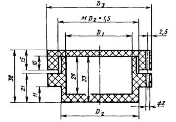 Черт. 11 1 - колпачок; 2 - прокладка фторопластовая; 3 - корпус Размеры, мм