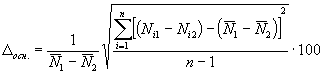 отклонение разностей Ni1 - Ni2, полученных при i-м измерении 1 и 2-го